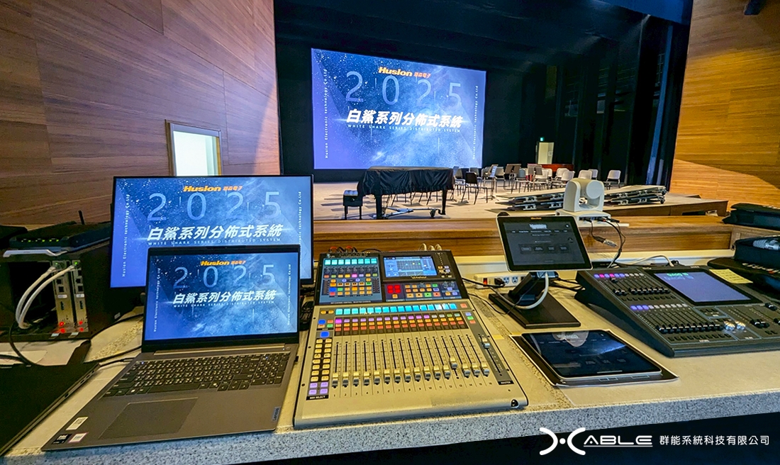 本案我們協助經銷商為中部一所知名國際學校之演藝廳,精心規劃了專業影音環控設備系統,為使每一場演講、表演都能流暢進行,我們導入了Husion湖森-分佈式影音控制傳輸管理系統,本系統除了可支援Windows、Linux、Android、iOS、Mac OS等多元作業系統,並可雙向反饋控制訊號和參數以達到互聯互通之機動性,提供使用者精準判斷設備狀態和各式數據,結合跨平台操作介面系統與Husion CCU DB10E-T 10吋交互式彩色觸控面板設備,為校園打造出最智慧、最專業之演藝育樂環境。