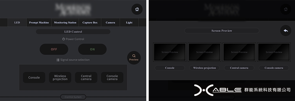 LED控制頁及訊號源畫面預覽頁: