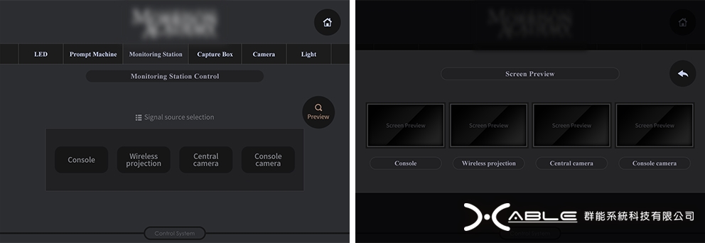 監控台控制頁及訊號源畫面預覽頁: