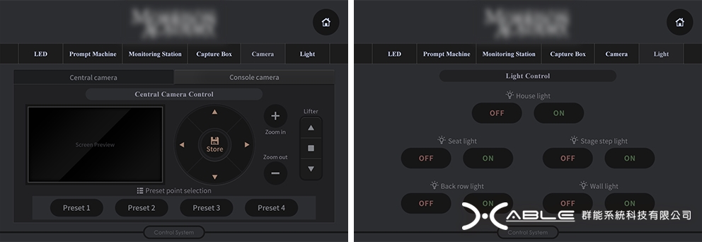 (3) 行動化控制:使用者可手持平板設備,隨時隨地調整燈光、音量、投影等。